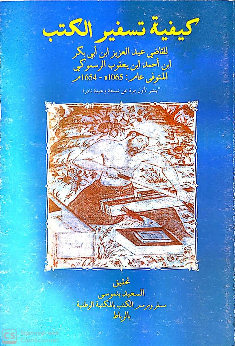 7- محمود زكي معتمدا على نسخ كثيرة...فاجاد فيه وجود... 7 - صناعة تسفير الكتب وحل الذهب لأبي العباس أحمد بن محمد السفياني صنفه عام 1029 هجرية...وقد نشره بول ريكار في باريس سنة 1925...ثم اعادت نشره مكتبة الثقافة الدينية بالقاهرة سنة 1999 .....8 - التقييد في كيفية تجليد الكتب لمؤلف