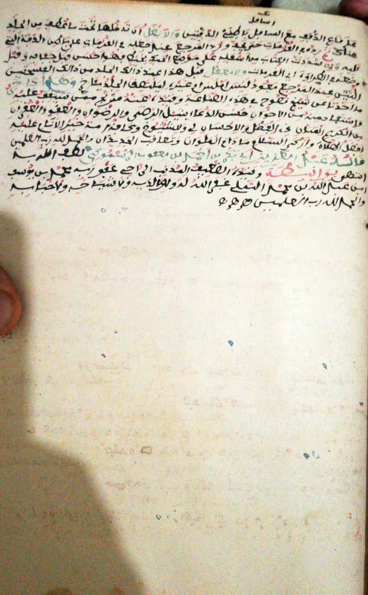 19- هذه النسخة الوحيدة...من محتويات إحدى الزوايا بسوس.... سبحان الله... أنظروا كيف صار تحقيق المخطوطات عندنا من مصورة عبدالعزيز الساوري لهذه النسخة إلى محتويات إحدى الزوايا بسوس...سيدي الفاضل ... أنا الزاوية...لا بارك الله فيك...وكان الأستاذ الباحث المدقق علي لمين قد وقف