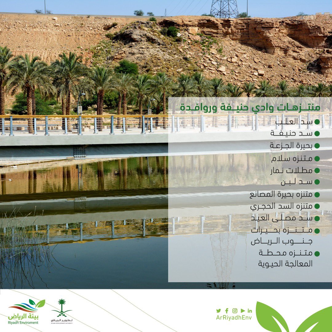 بعد أن تم تهذيب مجرى الوادي وإنشاء القنوات الدائمة، جاءت مرحلة تطوير أماكن مختارة من الوادي، تتميز بتكويناتها الطبيعية، حيث تم اختيار تسع مواقع مختلفة في بطن الوادي #بيئة_الرياض #قصة_وادي_حنيفة