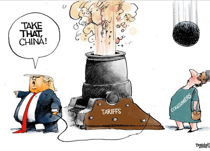 @realDonaldTrump وهذا رسام كاريكاتور اخر يصور كيف يحرق ترامب نفسه دون ان يشعر .. يطلق القذائف على الصين لكنها في الواقع تخرج من الفوهة الخلفية للمدفع لتصيب الناخب الأمريكي في مقتل ، الناخب الأمريكي الذى صوت لترامب ..