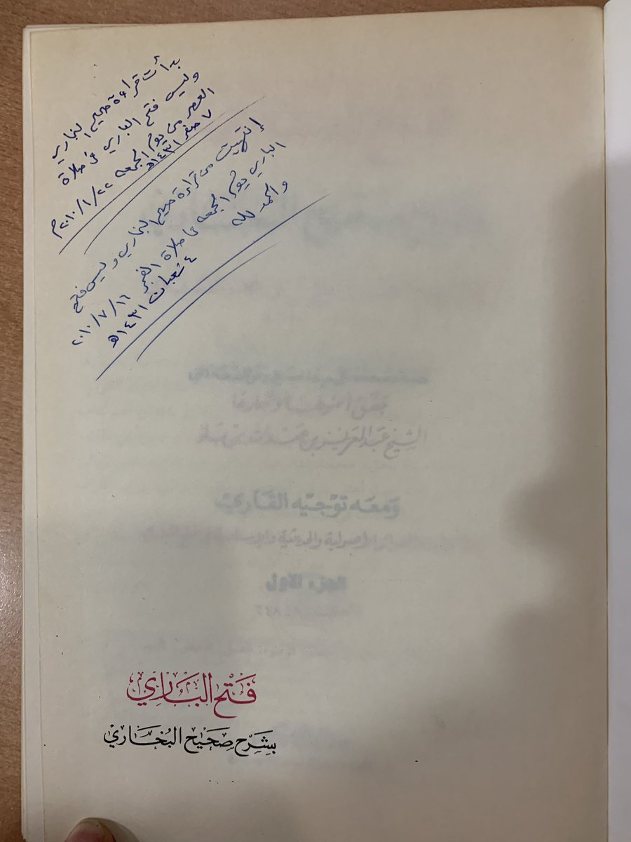 ١٣- #صحيح_البخاري قرأته كاملاً من نسخة مكتبة مسجدنا ، لأنه لم يكن عندي نسخة في ذلك الوقت ، ودونت تاريخ البدء والإنتهاء منه على نسختي لـ #كتاب #فتح_الباري ، واستفدتُ استفادة كاملة منه ، ومن طريقة تبويب الإمام البخاري لبعض أحداث #السيرة_النبوية وغيرها ، واعتمدتُ طريقته في كتبي .
