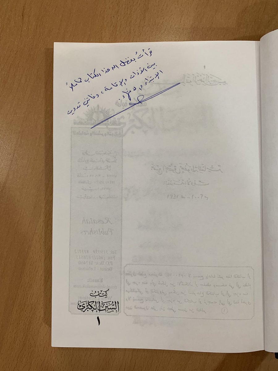 ٣٢ ختمت اليوم بين الأذان والإقامة من صلاة العشاء كتاب : #دلائل_النبوة ومعرفة أحوال صاحب الشريعة ﷺ لـ الإمام البيهقي ، ويقع في ٧ مجلدات ، والكتاب قيم وثمين ، ومع الأسف الطبعة التي عندي سيئة جداً بـ كثرة الأخطاء المطبعية ويوجد سقط في عدد من الصفحات في المجلد الثاني .