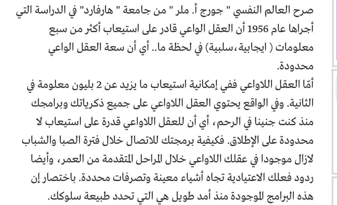 ونقطه مهمه نقدر نستخدم قدرة العقل الباطني في التحكم بسلوكياتنا عن طريق اعطائه اوامر بتنفيذها والايمان بأنه راح ينفذها...