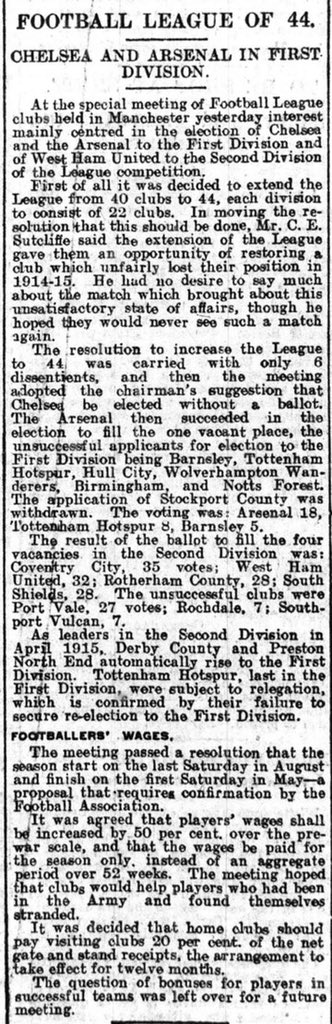 تم الاتفاق من قبل الاتحاد الانجليزي على الموافقة ببقاء تشيلسي في الدوري ، وتم الاتفاق كذلك على هبوط توتنهام لدوري الدرجة الثانية .