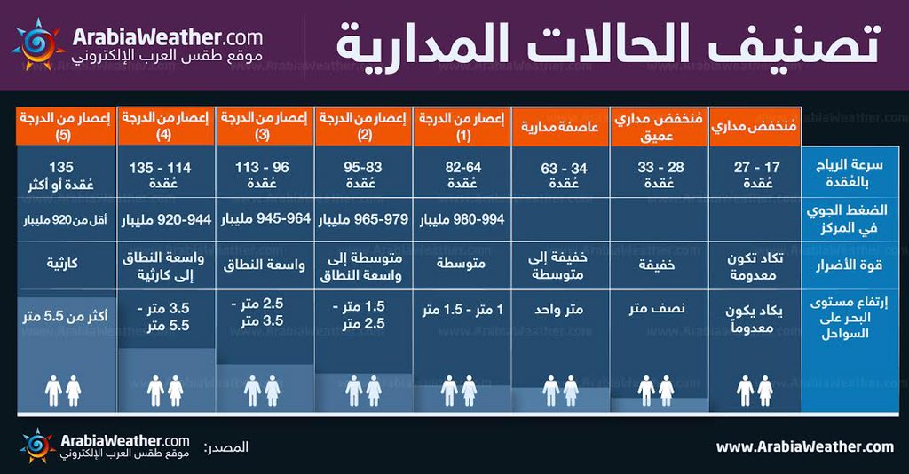 تعتبر الدرجة الخامسة هي الأشد في تصنيف الحالات المدارية