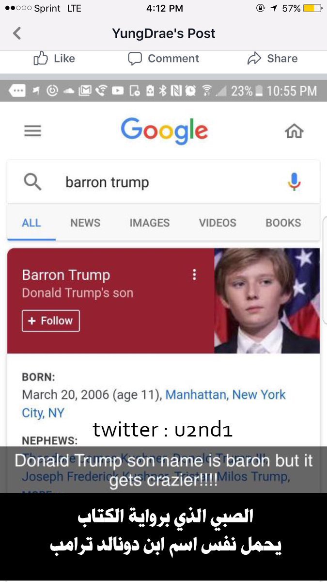 @u2nd1 الغريب انه ابن دونالد ترامب الرئيس الحالي اسمه (بارون ترامب) ايضاً ..