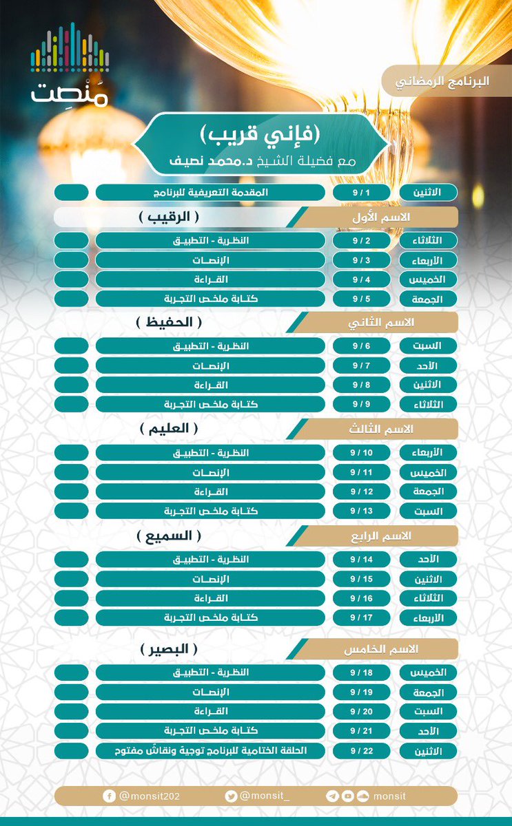 - ترتيب أوقات السماع على أيام الشهر.