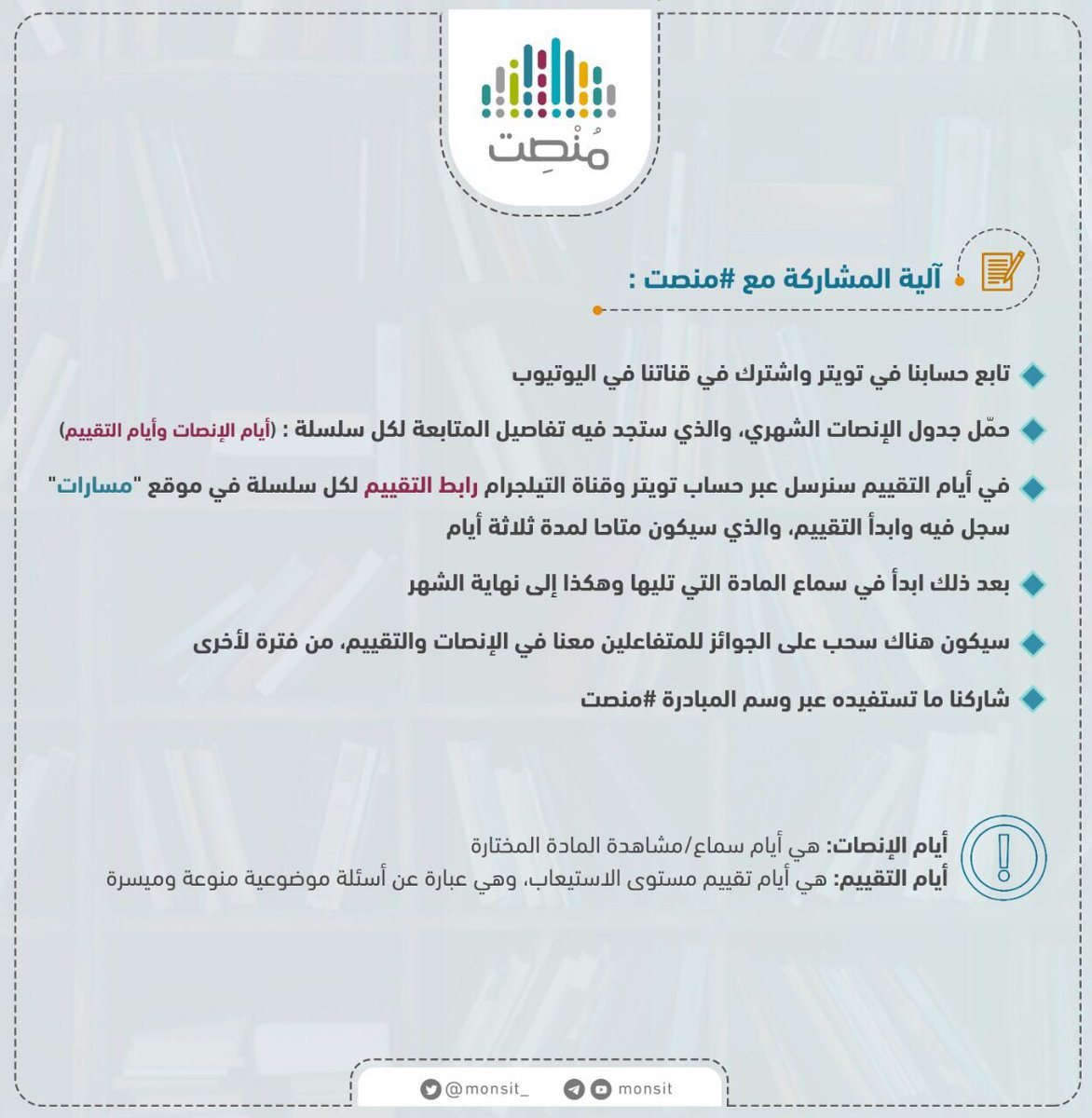 - اختيار سلاسل صوتية أو مرئية كل شهر.