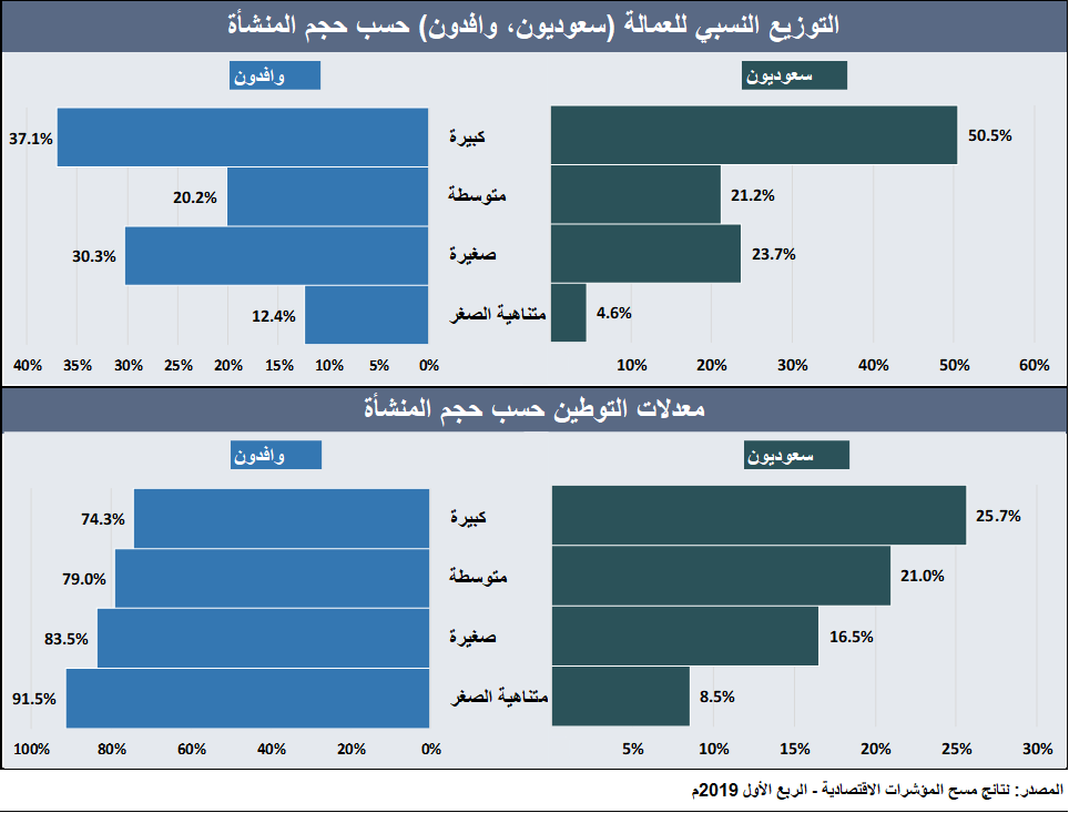 هل من الممكن أن تعيد وزارة العمل تصميم كافة برامج التوطين وجميع إجراءات التوظيف ورسوم العمالة وفقاً لهذه الصورة الأكثر تفصيلاً عوضا عن التعامل مع منشآت القطاع الخاص على أنها تقريبا كيان متماثل أو متشابه؟!