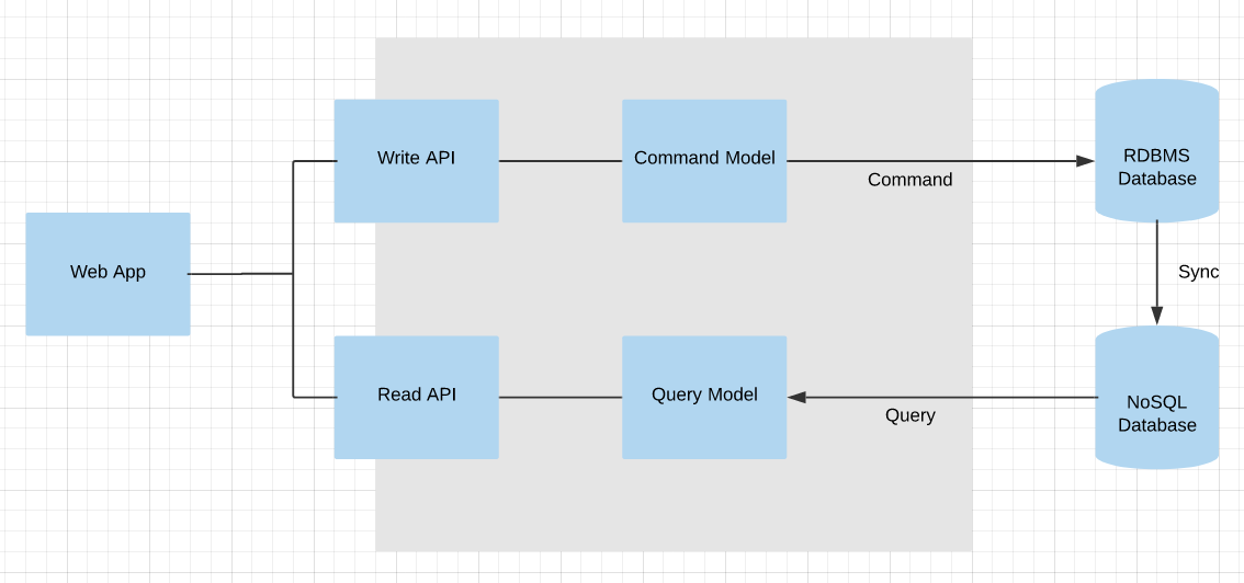 قبل الخوض في الHow. الصورة السابقة في اول السلسلة تبين لك كيف من الممكن ان يكون شكل النظام , لديك قاعدة بيانات خاصة بالكتابة فقط تقوم بعمل مزامنة لقاعدة بيانات او اكثر خاصة بالقراءة قد تكون SQL او NoSQL.