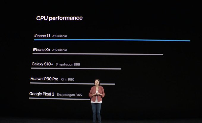 أبل توضح سرعة معالج الأيفون 11 الجديد A13 وكذلك معالج الجرافكس وتفوقهم على باقي المعالجات و الهواتف الأخرى .