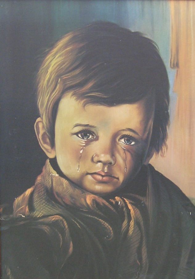 عام 1969 كان الرسام الإيطالي جيوفاني براغولين يضع لمساته في لوحة سمع صوت بكاء من نافذه فأسرع ليشاهد مصدر الصوت ورأى طفل يبكي وأنتاب الرسام شعور عميق من الحزن فرسم هذه اللوحه الشهيره وأنتشرت أنتشار عالمي وكان الطفل يبكي لأنه تذكر حادثة أحتراق والده ووفاته متفحماََ.