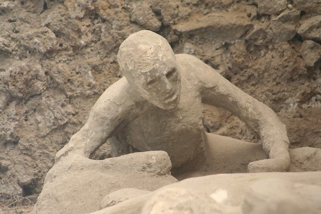 هذه اللوحه تاريخها قديم وتمثل اللحظات الأخيرة لـ قرية بومبي الإيطاليه عام 79 حيث ثار بركان بقوة كبيرة وطمر المدينة تحت طبقة رماد حتى أنها اختفت ولم يعيد أكتشافها الا في القرن الثامن عشر وعثروا على سكان المدينه بنفس أوضاعهم التي كانو عليها بلحظات قليلة قبل البركان.