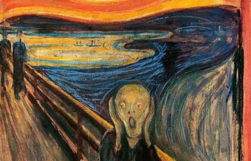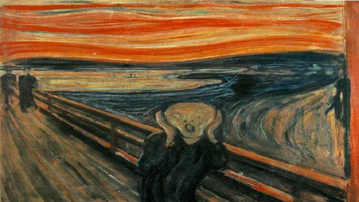 هذه اللوحه تسمى بـ "الصرخه" وهي رسمه رسمها الرسام النرويجي "إدفارت مونك" مصوراََ شخصية معذبه وتصرخ على جسر وتحت سماء حمراء دمويه وتصف كرمز فنياََ لقلق الأنسان الحديث رسامها كان يعاني من مرض نفسي وهلاوسه حتى أصبح يعتقد انها مسكونه ومنحوسه مليئه بالبؤس والحزن والألم والكآبه.