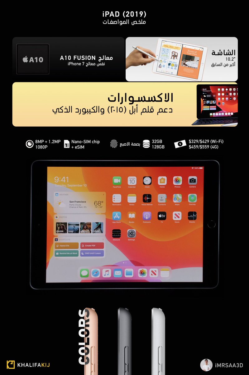 @7Alsabe تعرف على أهم مميزات iPad الجديد سعره يبدأ من 329$ سعره بصراحه رهيب و تصميم نفس أجهزة الايباد السابقة