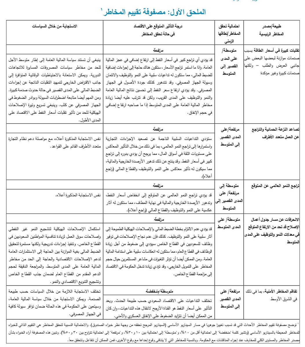 أشار تقرير صندوق النقد بأن (المملكة تقوم "بعمل جيد" في تنفيذ توصيات صندوق النقد)، والمرفقة في الجدول أدناه.