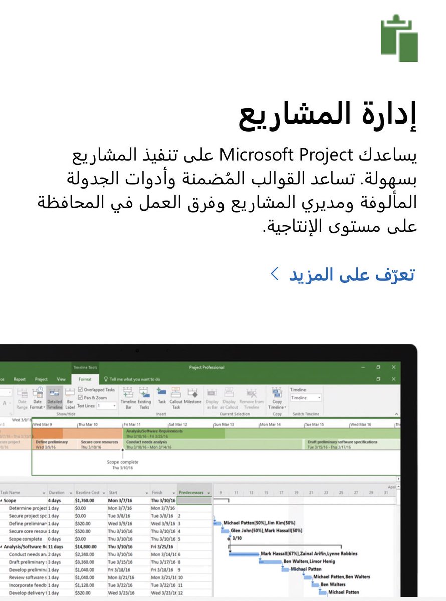 ويوجد منه نسختين نسخة تثبت على الجهاز Microsoft Project