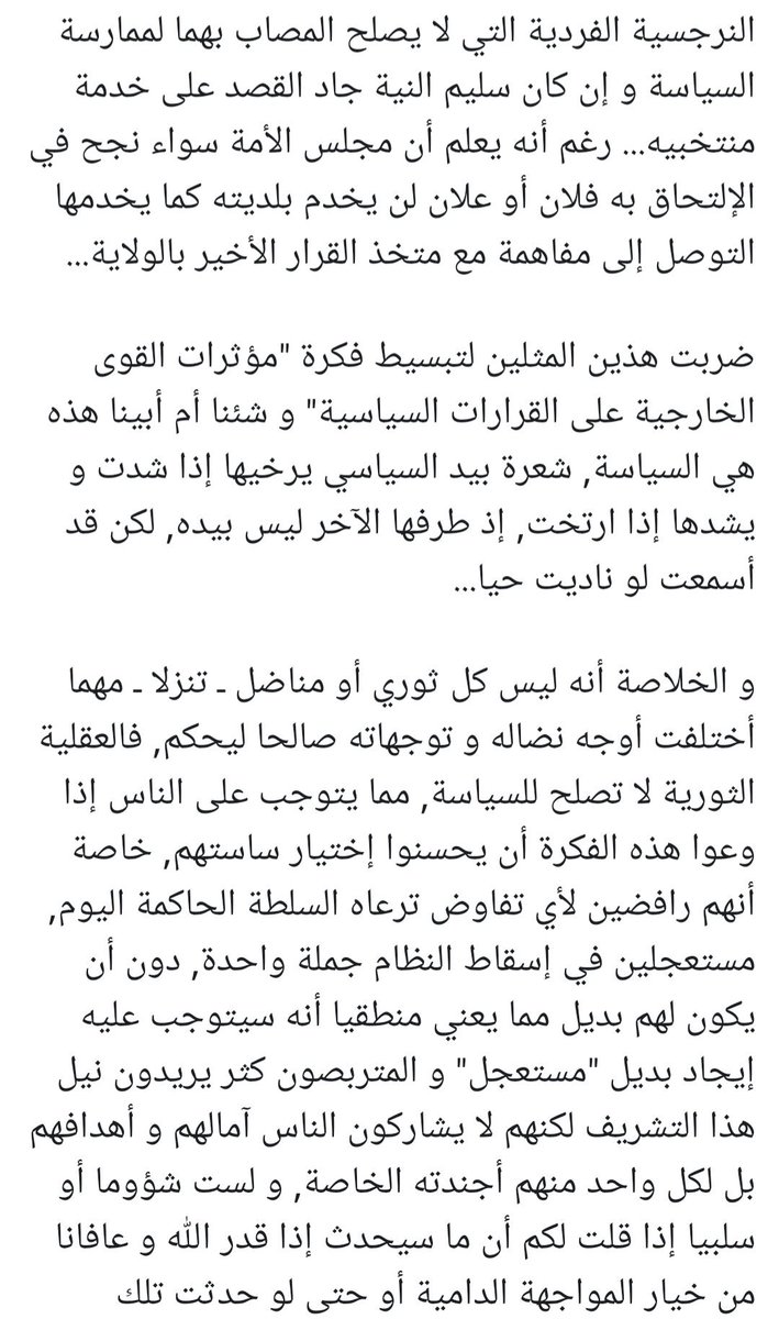 سلسلة من ستة تغريدات، بعنوان "الرئاسة ليست مهنة كأي مهنة، ولا مهمة كأي مهمة... ليس كل ثوري صالح ليكون حاكما"