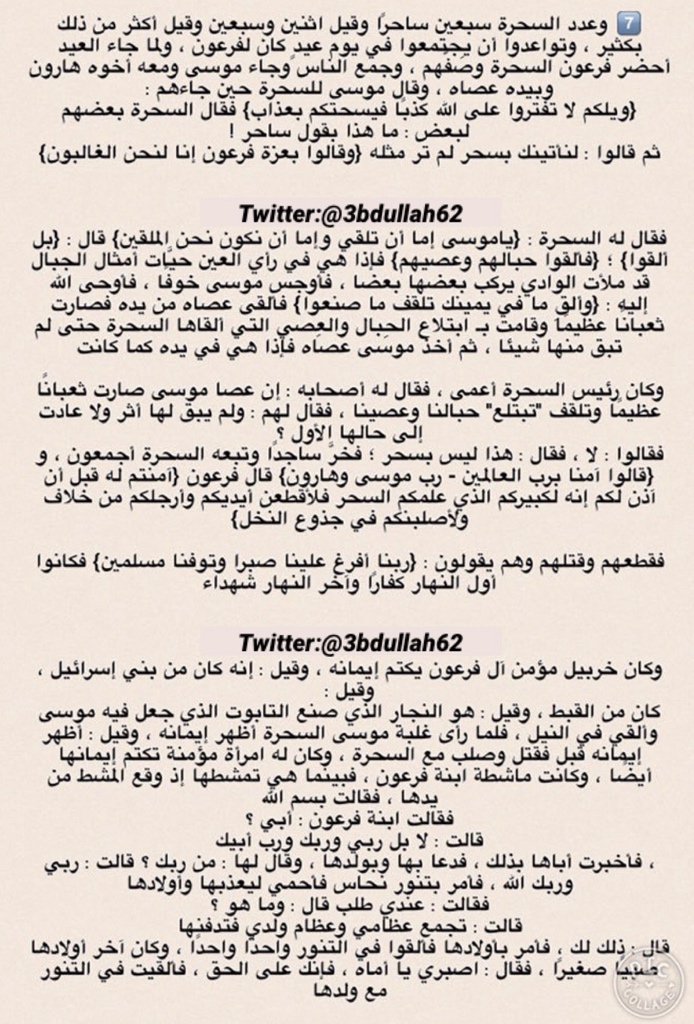 وأبدأها بقصة ولادته ، وأخذه للجمرة ، ونتفه لـ لحية فرعون وهو صغير