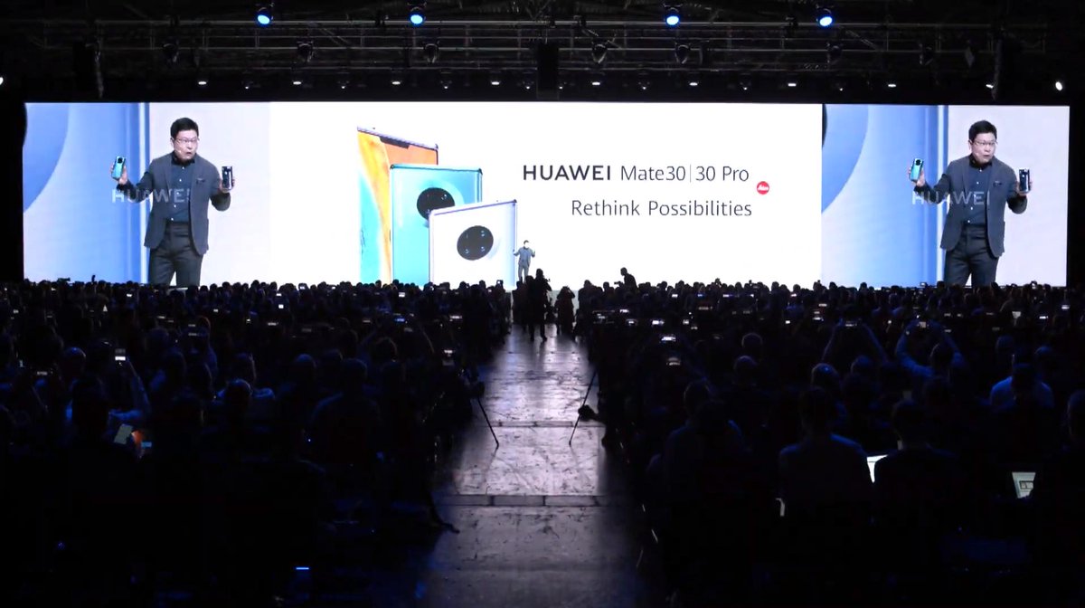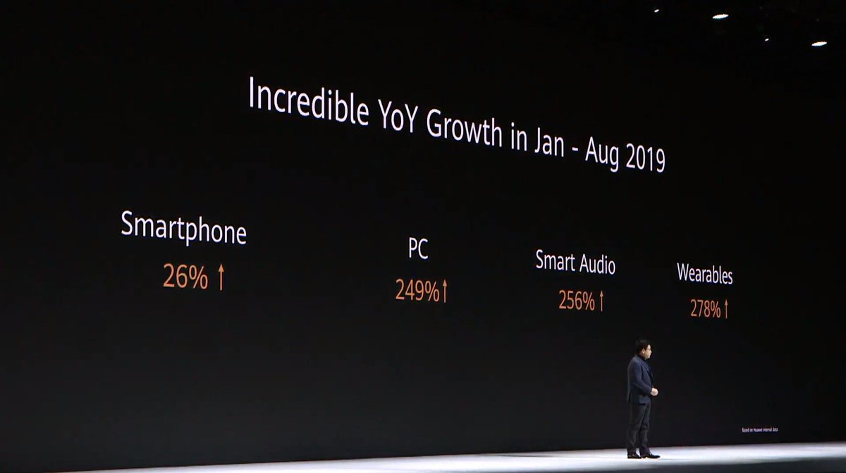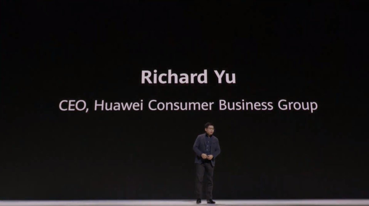 صعود الرئيس التنفيذي على المسرح، والحديث عن نسب نمو هواوي وبعض الأرقام في الفترة الأخيرة
