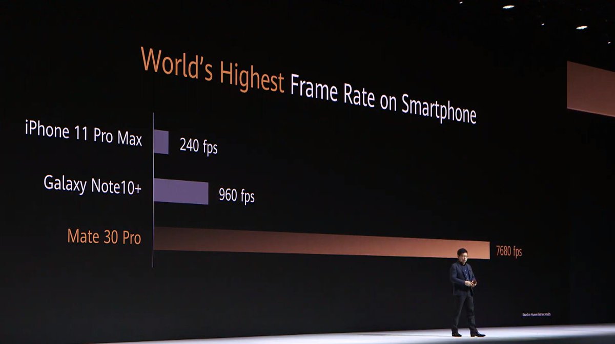 مقارنة الـ Frame Rate مع باقي المنافسين، الميت 30 برو يحمل كاميرا مع 7680 فريم، والمقارنة مع احد الاجهزة