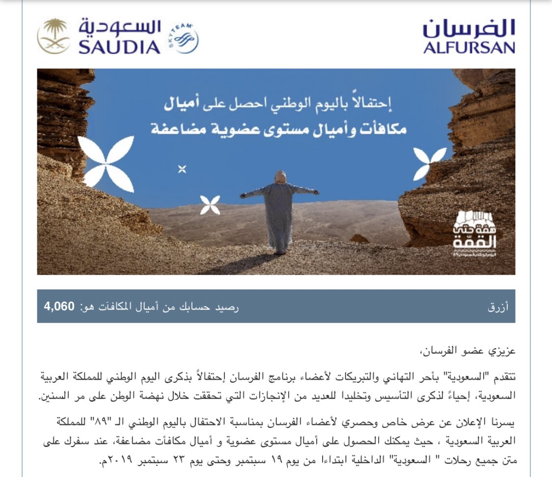 عرض #الخطوط_السعودية @Saudi_Airlines ( الاميال )