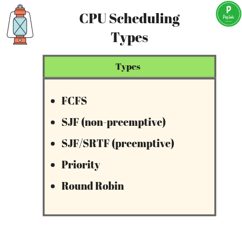 اختلاف العمليات هذي يعني أنه لابد من طريقة أو خوارزمية للاختيار بينهم، وأن الاختيار مايتم بشكل عشوائي، الخوارزميات عموما تنقسم إلى قسمين، قسم قابل للمقاطعة(Preemptive)، وقسم غير قابل للمقاطعة(Non-preemptive).