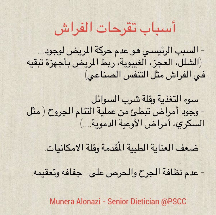 سأورد الجانب الغذائي (الوقائي والعلاجي) لـ تقرحات الفراش pressure ulcer