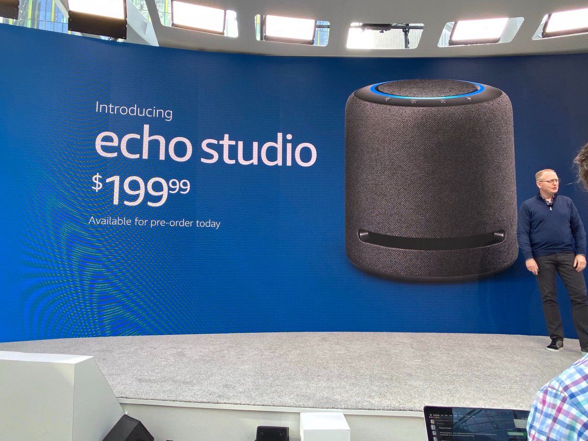 كشفت أمازون ايضا عن Echo Studio سماعة منزلية ذكية فيها 3 مكبرات صوت قويه ..تدعم اليكسا طبعا ودولبي اتموس و فيها ميزة الصوت المحيطي بحسب حجم الغرفة ومزايا أخرى كثيرة .. سعرها 199.99 دولار.