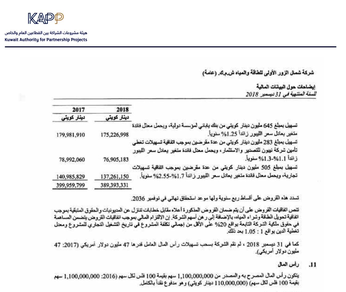 بالنسبة لشركة #شمال_الزور، وإن كان نشاطها الأساسي مباحاً، إلا أنها محملة بقروض ربوية مقدارها ٣٨٩ مليون د.ك، وهذا المبلغ يمثل أكثر من ٣ أضعاف رأس المال البالغ ١١٠ مليون د.ك.