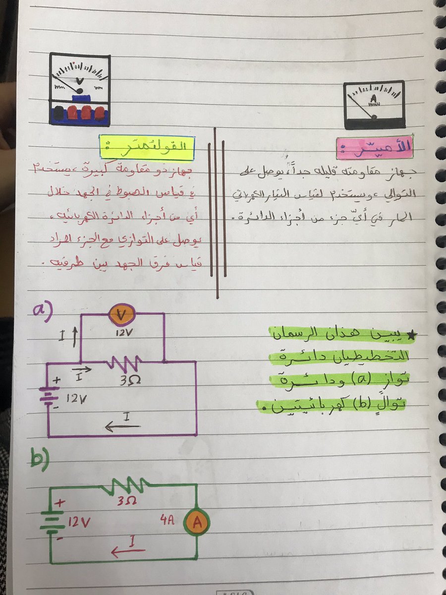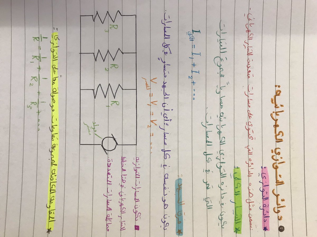 ملخص فصل ⚡️دوائر التوالي و التوازي الكهربائية⚡️