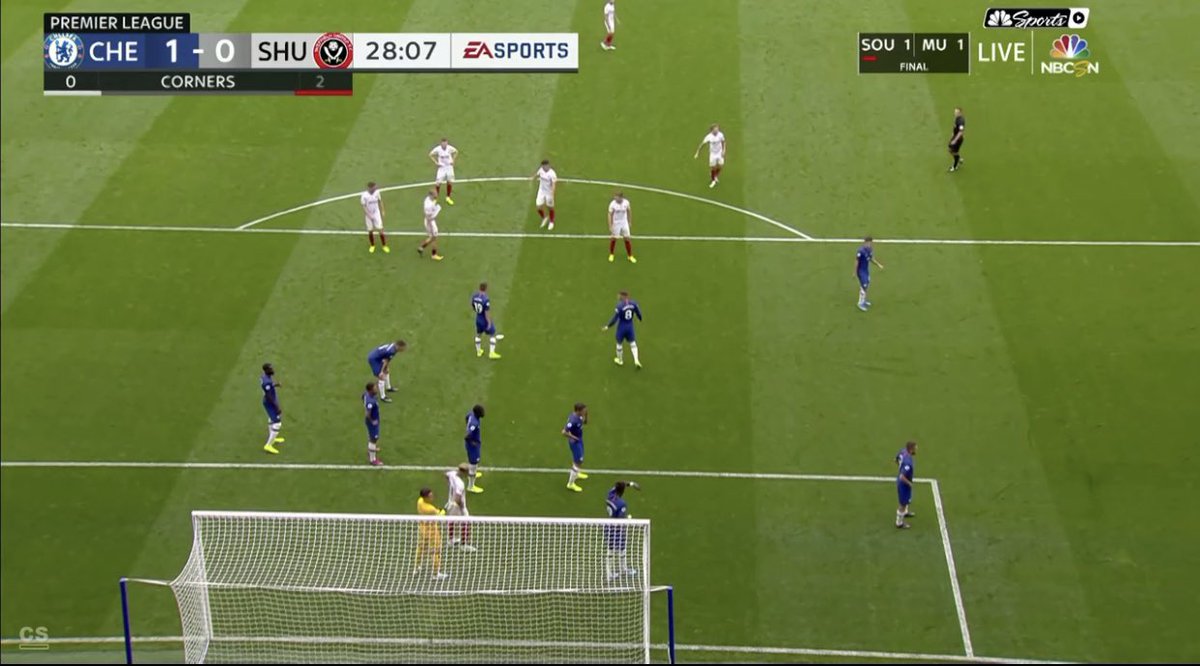 ربما أن تشلسي يفتقد للاعبين المميزين في الدفاع في الكرات الثابتة..ساري قال بأنهم لا يتمتعون بالقوة البدنية الكافية...ابراهام هو الوحيد من غير المدافعين الذي يتجاوز طوله 6 أقدام..معظم لاعبي الوسط قصار القامة و ومعظم المدافعين ليسوا أقوياء في الهواء.