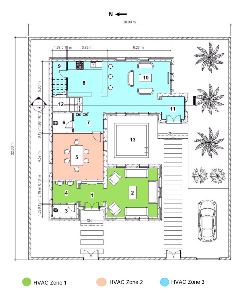 بالرغم من الأنظمة المقترحة عالية الكفائة الا ان برنامج المحاكاة اعلى قيمة يستطيع قياس تأثيرها هو EER 13.43 و SEER 17.4 والنتيجة انخفاض كبير في استهلاك الكهرباء من 20,024 الى 10,368 كيلوواط ساعة في السنة.