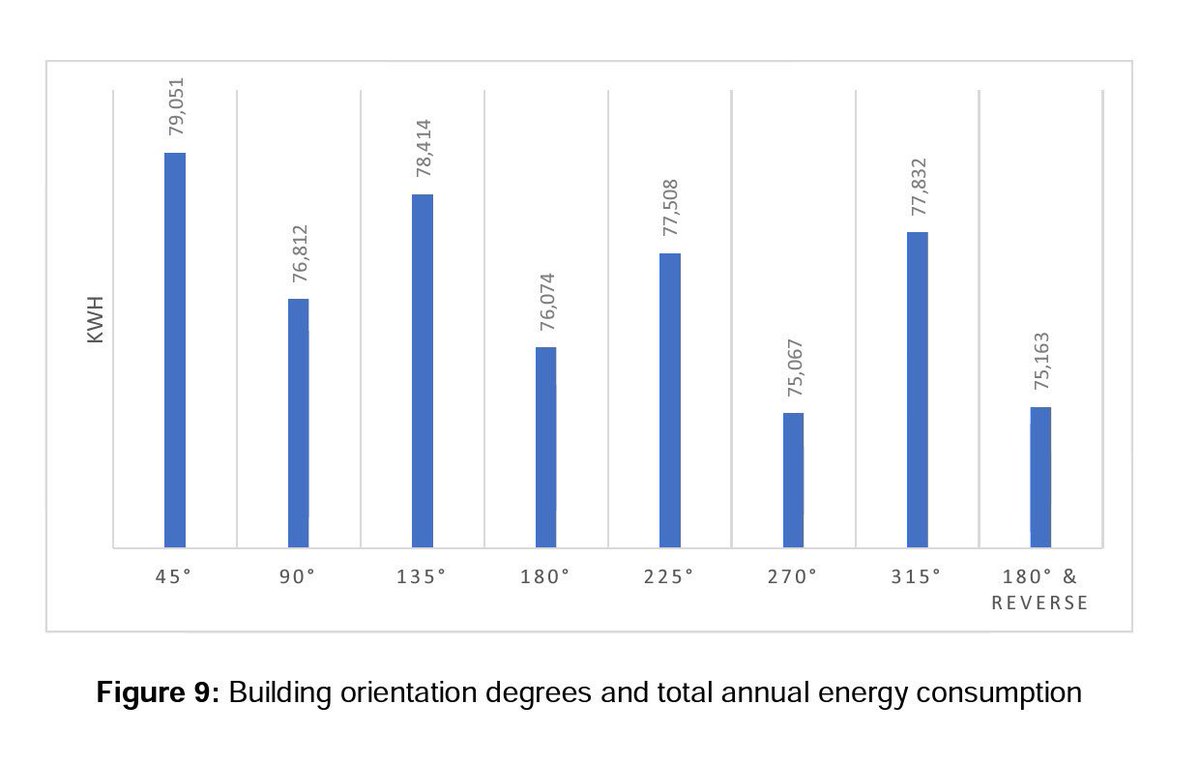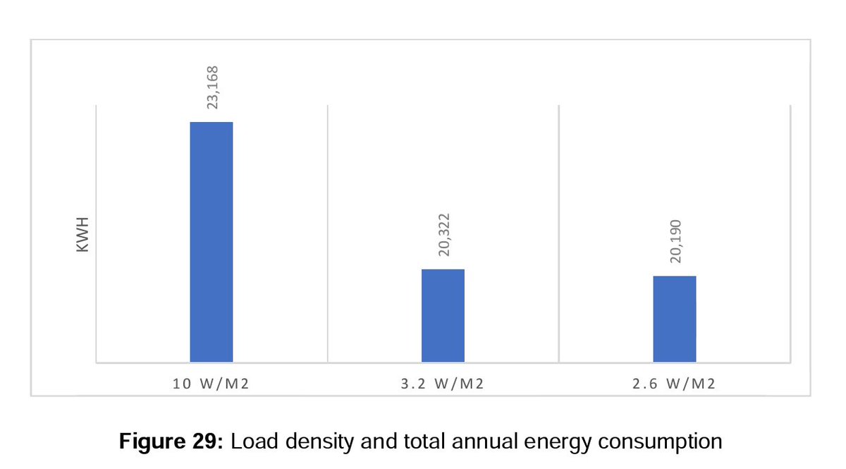 حدد كود ترشيد الطاقة بأن الحد الأعلى لل U-value هو 0.49 وعند التصميم بناء على هذه القيمة لم يحدث اي انخفاض في حين ان التصميم بناءا على passive house standard والمحدد بي 0.15 ادى انخفاض بقدر 769 كيلوواط ساعة في السنة.