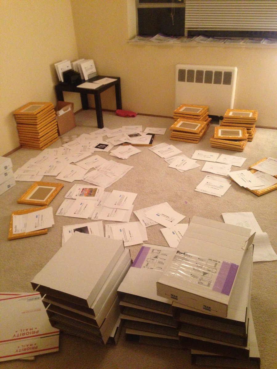 نحن نعمل الآن مع مركز إنجاز يطبع جميع إطارات منتجاتنا ويشحنها ، لذلك لم يعد يتعين علي التعامل مع أي من ذلك بنفسي ، مما يتيح لي حرية العمل من أي مكان في العالم.