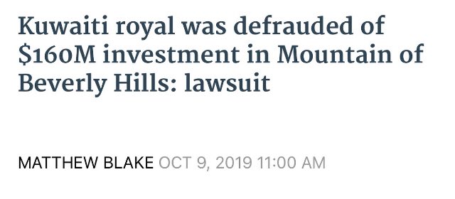 الاحتيال على أحد أعضاء الأسرة الحاكمة الكويتية لاستثمار ١٦٠ مليون دولار في بيفرلي هيلز ماونتن: دعوى قضائية! 1️⃣