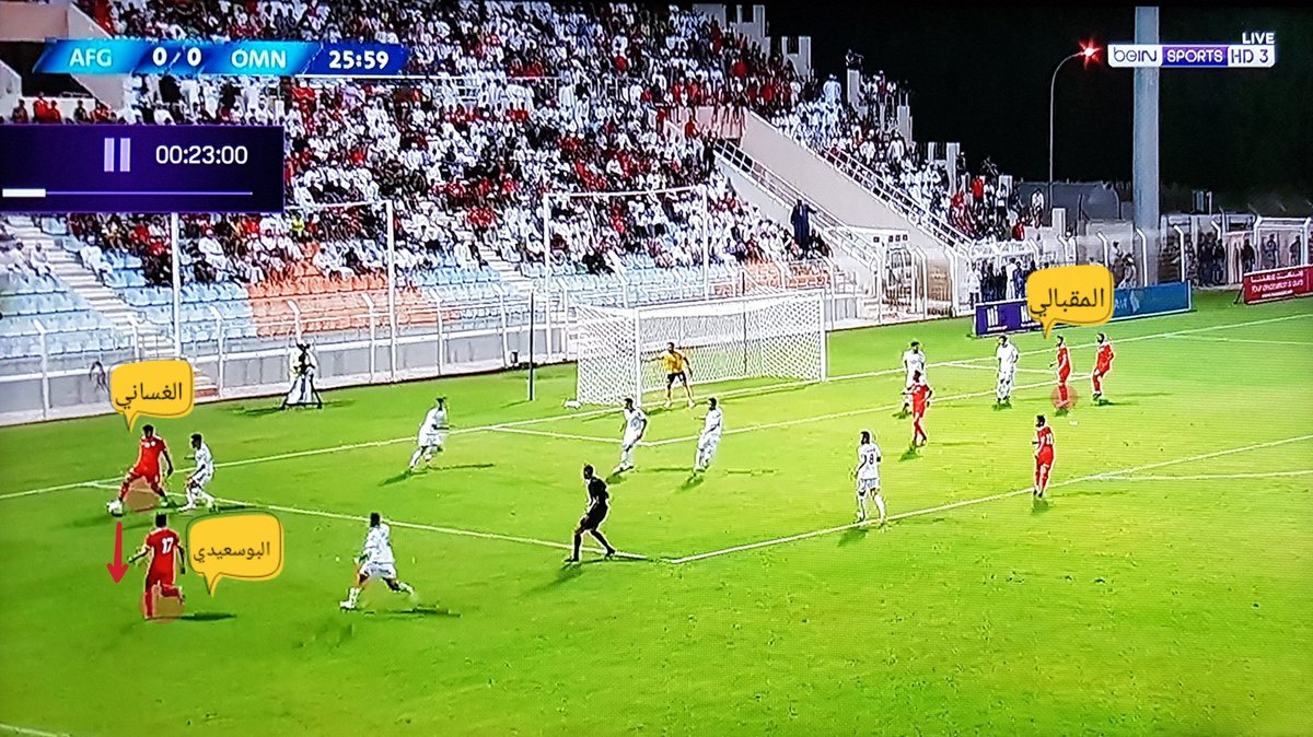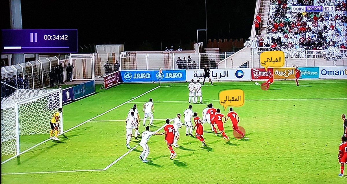 ارسل علي عرضية دقيقة 💯 أرتقى لها المقبالي 💪🏻 بشكل مثالي 🔝 وارسلها برأسه للشباك ⚽️ معلنا أول أهداف منتخبنا 🇴🇲
