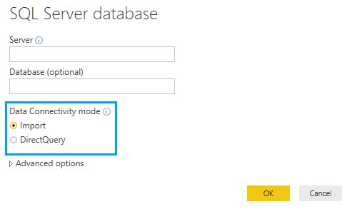 هنا يتم أخذ نسخة من البيانات وتحميلها على ال power BI بمعنى يكون الاستعلام من ال model الموجود في ال power BI وليس مصدر البيانات الأصلي