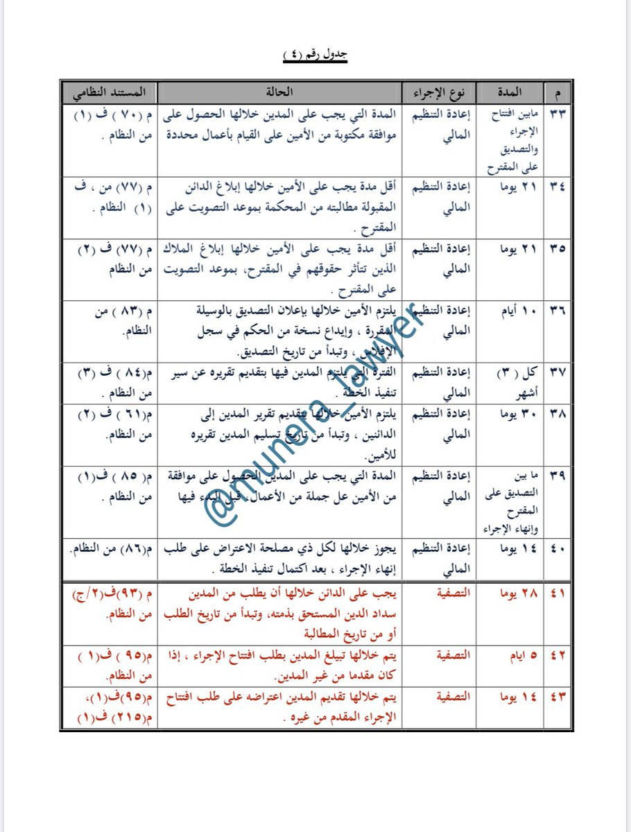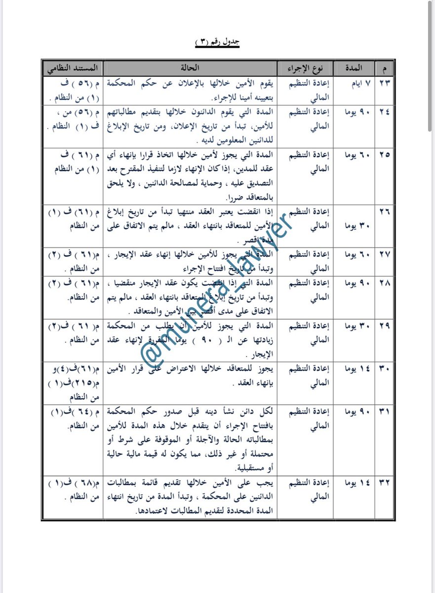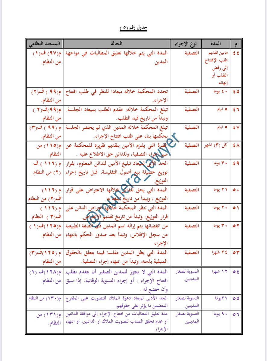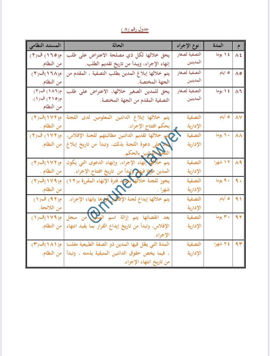 #الجداول_العشر في المدد المنصوص عليها في #نظام_الإفلاس ، ولائحته التنفيذية ، وماصدر عن @BankruptcyKSA من قواعد وتنظيمات .