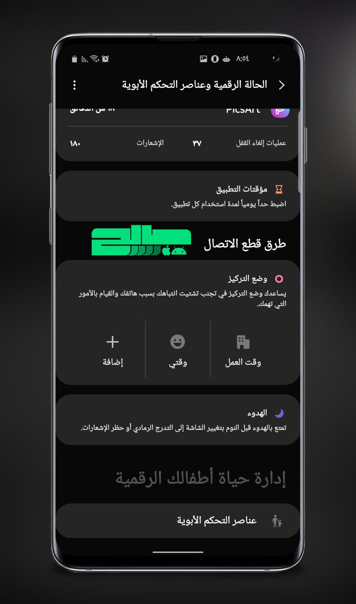 في #اندرويد 10 (One UI 2.0) تم دمج الرقابة الابوية مع الحالة الرقمية.