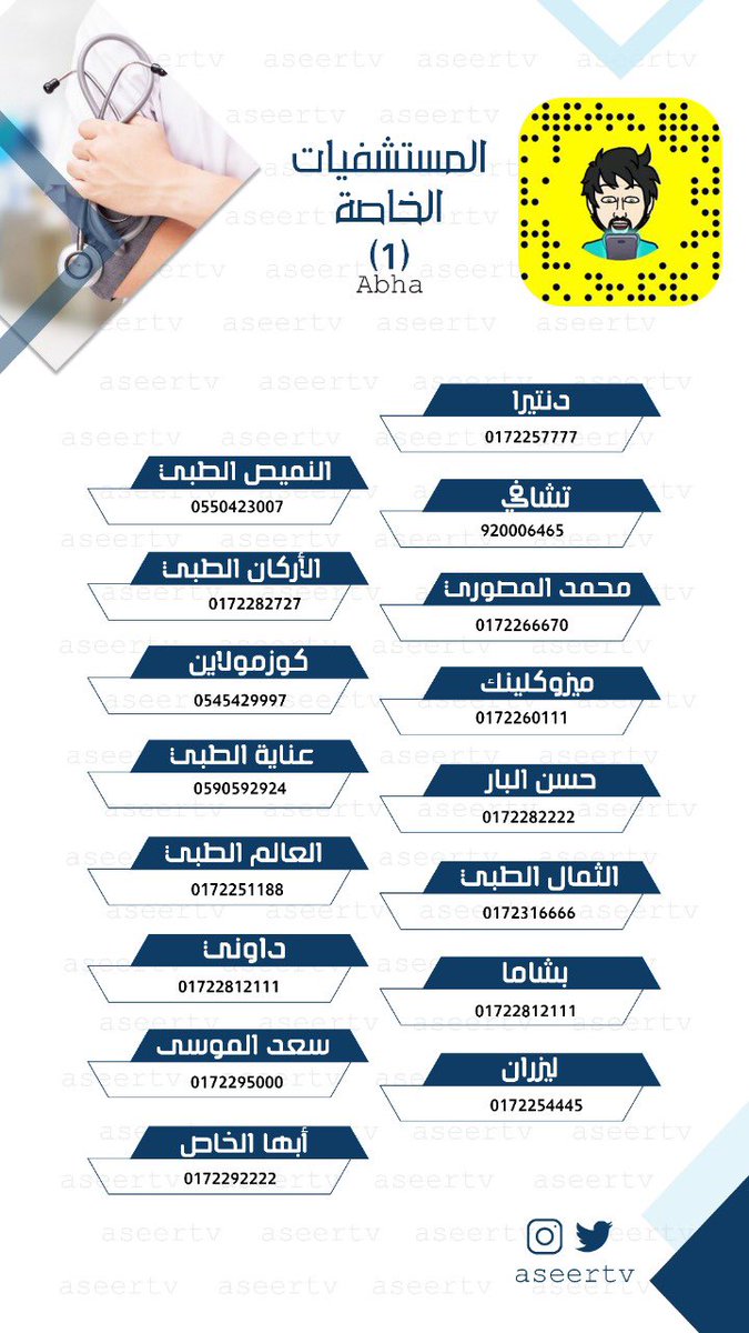 - ? قائمة المستشفيات الخاصة في أبها وخميس مشيط .