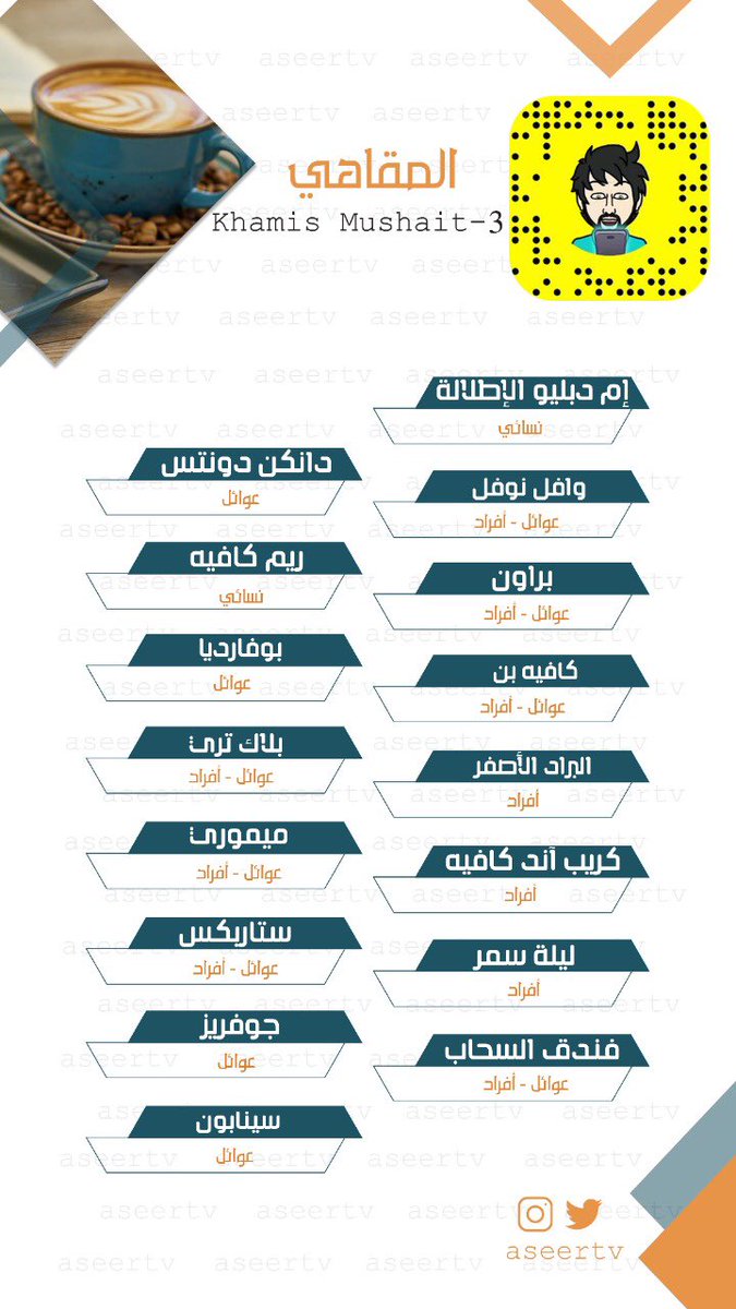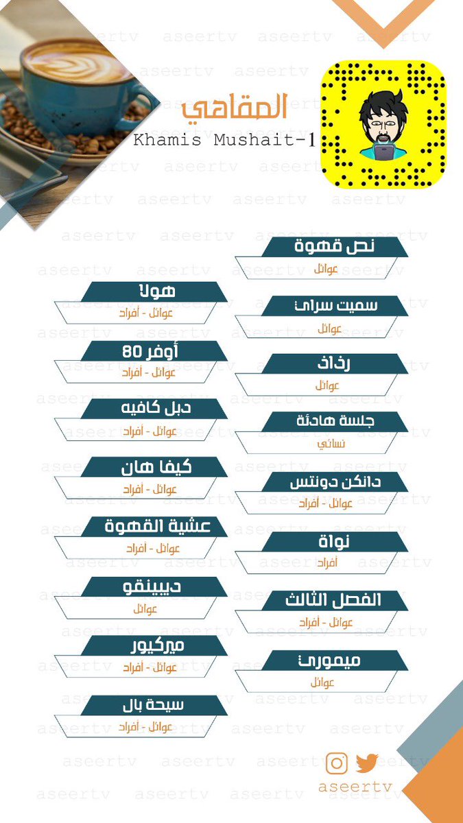 - ? قائمة بعض المقاهي في خميس مشيط .