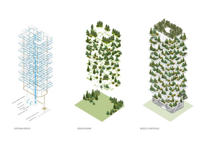 يقول بيوري "المهندسين المعماريين معتادون على التعامل مع المواد الطبيعية، لكن توفير الطبيعة الحية شيء مختلف تمام. نعتقد أن الطبيعة الحية ليست سوى جزء زخرفي من مبانينا. بينما مشروع الغابة العمودية هو إثبات أنه من الممكن تحويل الطبيعة الحية إلى مكون أساسي في الهندسة المعمارية"