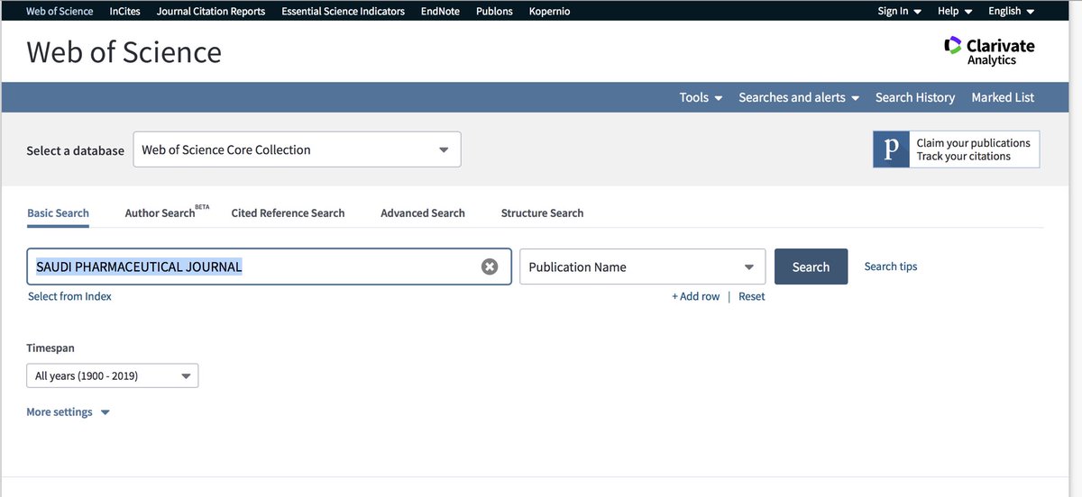 ٣- اختر Web of Sciences-ISI Thomson Reuters