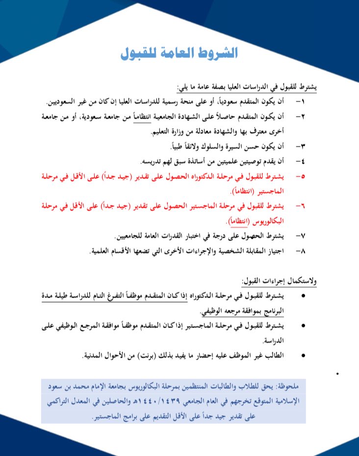 = أرفقنا لكم صورة الشروط العامة للقبول ✅
