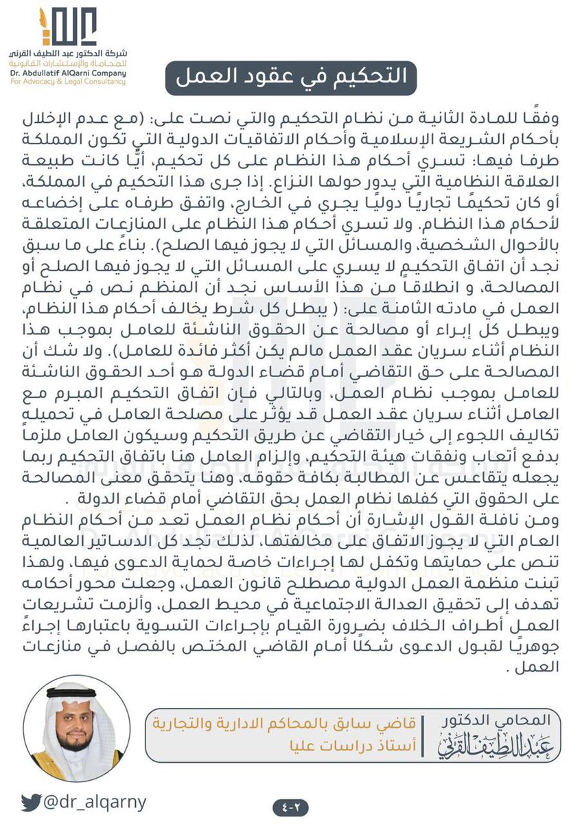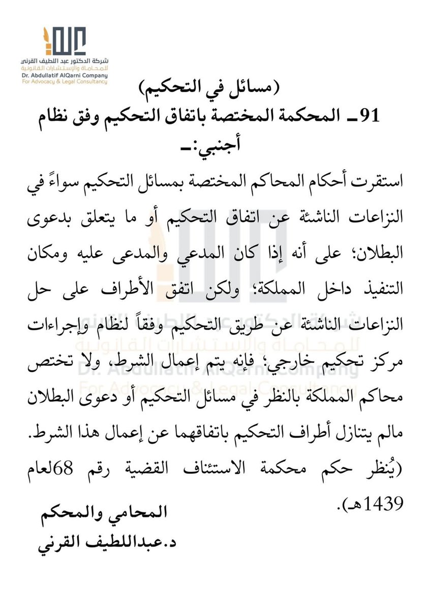 77-نشر الوكيل حكم التحكيم :