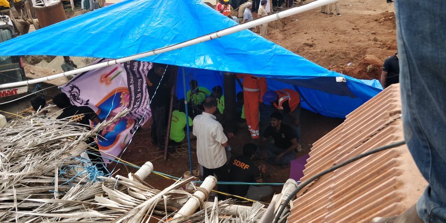 حاليا العملية معلقة بسبب انهيار التربة في الحفرة