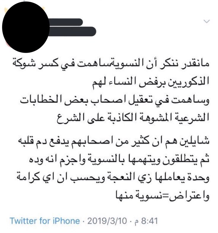 ولأن الرجل يعتبر الند لجنس النسوية، والكائن الذي تطالب المساواة معه وتطمح للوصول لمكانته وتقمص أدواره، وهو المكافح الأول لمشروع النسوية انتقلت #النسوية_الاسلامية من خطاب الكراهية إلى التشغيب على حقوق الرجل وعلاقته الزوجية