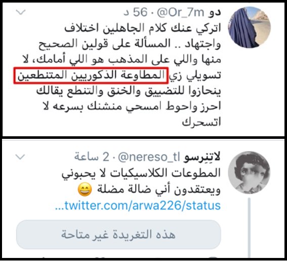 مع نماذج أخرى من الأرشيف ومع أفراخ #النسوية_الاسلامية المجددين، والمتدثرات من طالبات العلم، وصحوة قطيعهم بعد صمته لمحاربة الذكوريين.