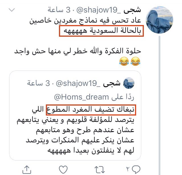 وبما أن #النسوية_الاسلامية خرّاجة ولاّجة لها باع طويل في جرأة التعامل مع الرجال (لإثبات ذات جنسها لديهم)، تستعرض لقطيعها(كانتصار على الرجل) تجربة جسارتها واستطالتها على أرض الواقع بصورة (الشجاعة في إنكار المنكر) وتستدل على المنكر بقول الجمهور (أن فخذ الرجل عورة لا يجوز إظهارها)